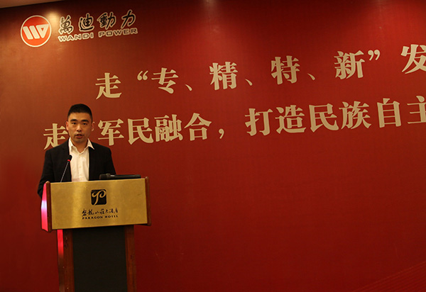 無錫萬迪動(dòng)力集團(tuán)有限公司總裁、無錫動(dòng)力工程股份有限公司總經(jīng)理陸國(guó)平做了走“專、精、特、新” 發(fā)展之路,走“軍民融合,打造民族自主品牌”之路的主題報(bào)告。